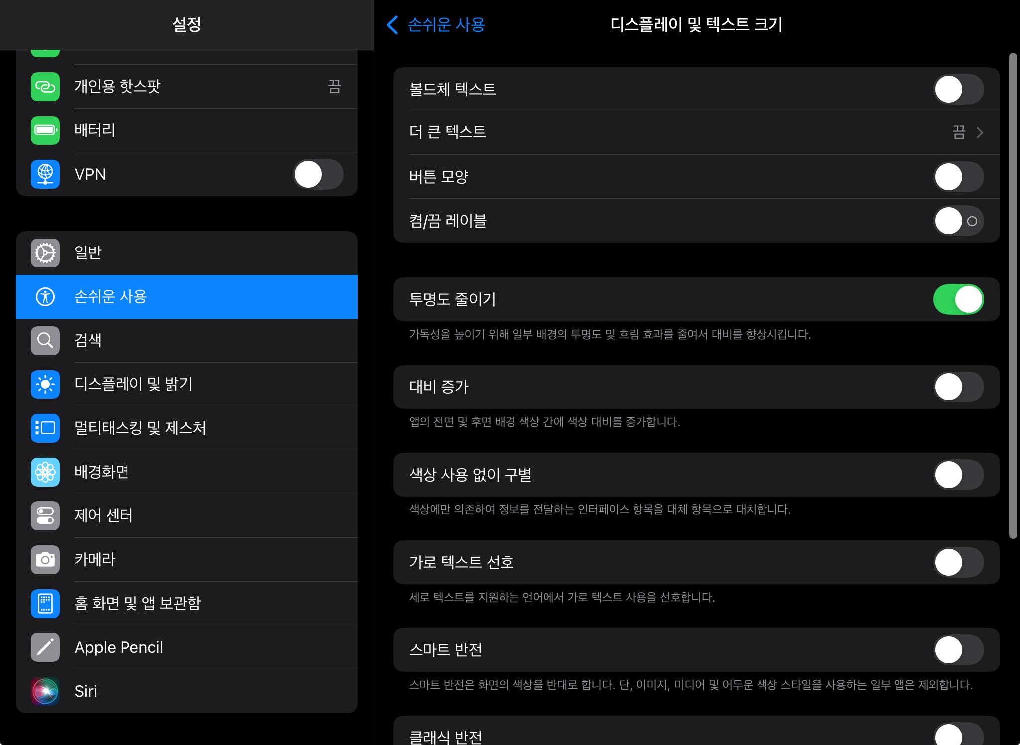 이 설정만으로 진짜 바로 눈에 띄게 아이패드가 빠릿빠릿해지는게 보이더라고요.