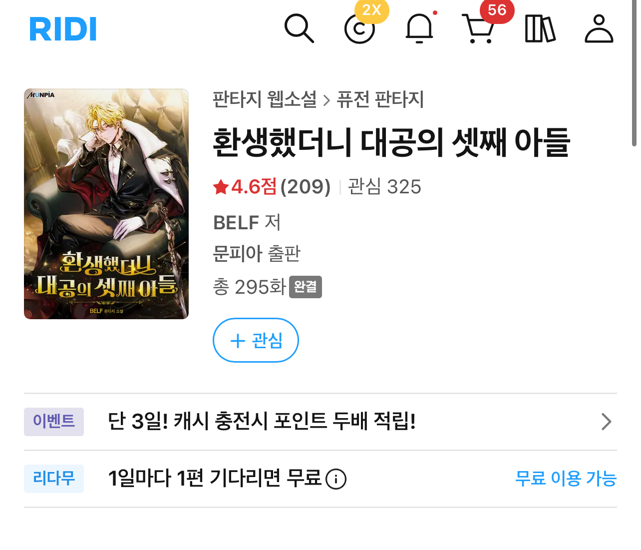 책 제목은 <환생했더니 대공의 셋째 아들> 입니다.