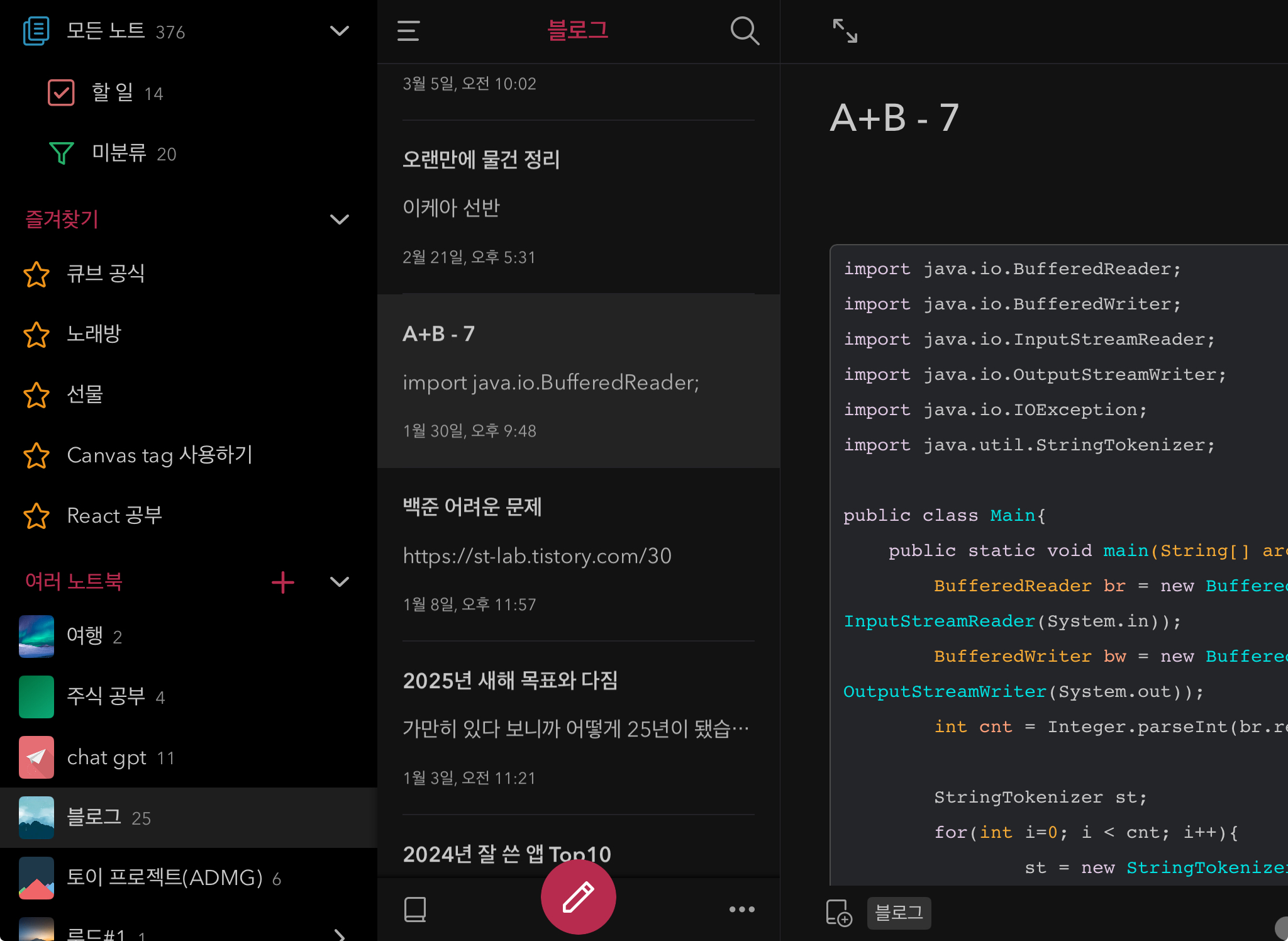 회사와 관련 된 메모들은 애플 메모에만 저장하고 있는데 역시나 기본 앱이 동기화도 빠릿빠릿하고 좋습니다.