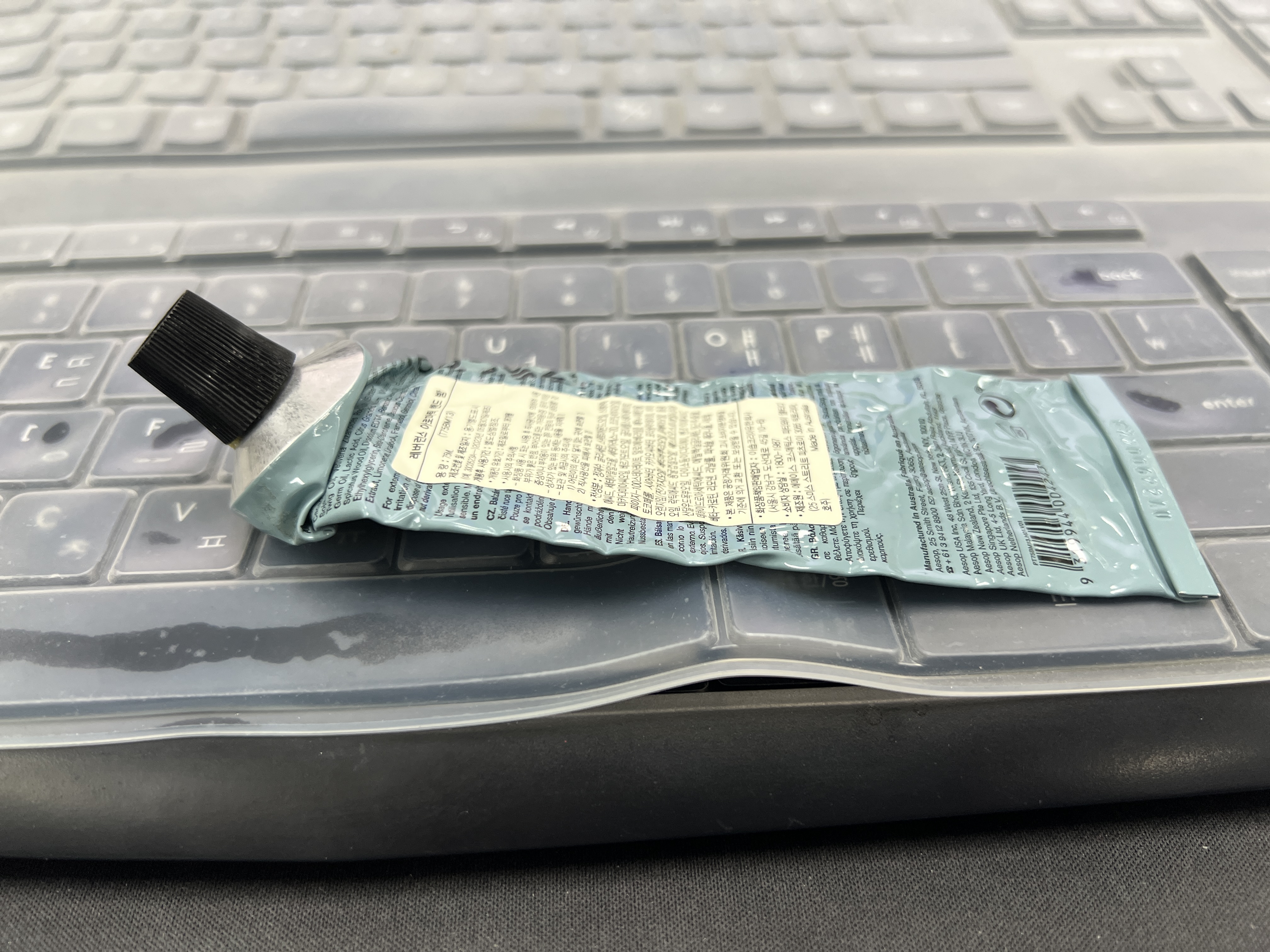 어떻게 하다 보니까 선물을 받은 건 아니지만 내 손에 들어오게 되어서 사용한 이솝 핸드크림. 핑크색이 가장 유명하고 향이 좋지만 이 파란색도 상당히 괜찮다. 이 이솝 핸드크림의 경우 제품의 포장지가 플라스틱이 아닌 특이한 재질인데 접었다 폈다를 많이 하면 구멍이 난다. 그래서 쓰면서 둘둘 말아서 다니거나 하면 본체 옆에서 구멍이 나서 가방 안에 핸드크림이 다 새는 대참사가 일어날 수도 있다. 나는 그냥 사무실 책상에 놔두고 거기서만 주야장천 사용해서 그런 일이 없었지만 주위에 이런 재질의 핸드크림을 사용하는 사람을 보면 자꾸 별도의 파우치나 봉지에 넣어 다닌다.